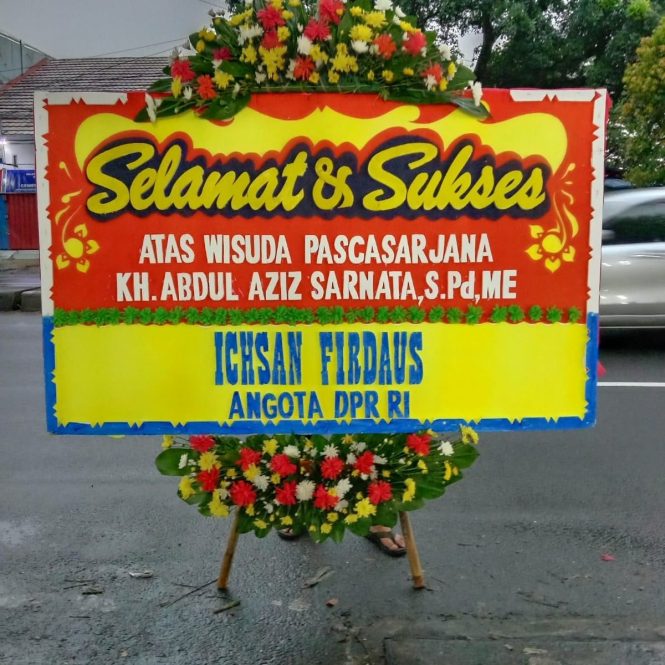- Efeknya: Teman Anda akan merasa sangat spesial dan bangga. Namanya yang terpampang besar di karangan bunga menjadi “pengumuman” keberhasilan yang bisa dilihat oleh satu kampus. Ada unsur prestige (gengsi) yang membuat wisudawan merasa dihargai kerja kerasnya.